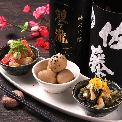 職人が目利きし、毎朝市場より直接仕入れる鮮魚を、その日のおすすめでお造りの盛り合わせとしてご用意!毎朝仕入れているので鮮度抜群の旬の食材を楽しんでいただけます。またその時の最高のものを仕入れているので、その時々の様々な盛り合わせをお楽しみいただけます!厳選した日本酒とも相性抜群です。