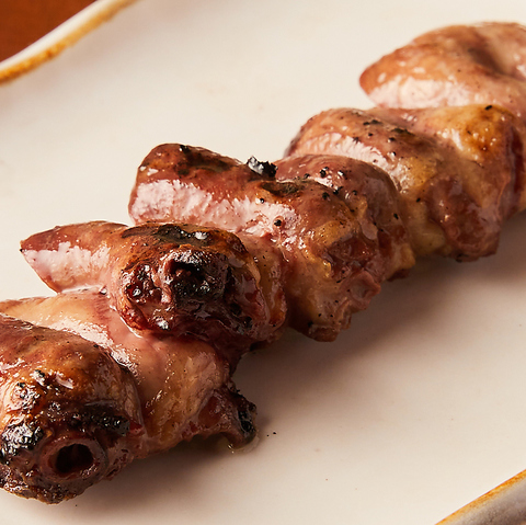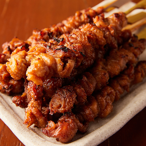 常連様から好評☆外はカリカリ中はモチモチ鶏肉の旨味が溢れる【博多とりかわ】。お一人様10本までと、数量限定になるほど人気!