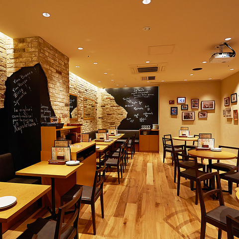 木のぬくもりが感じられる広々席の数々。ゆっくりと本格ナポリ料理をお愉しみください☆また陽気なバルは仕事帰りのサク飲み・サク飯にもぴったり♪