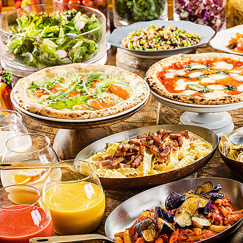 スパークリングワインや生ビール含む数十種類のドリンクが飲み放題!本場ナポリピッツァやパスタ、こだわりの肉料理に前菜盛り合わせなど充実のラインナップ!!女子会やカジュアルコースなど、シーンに合わせて選べるプランを多数ご用意しております。
