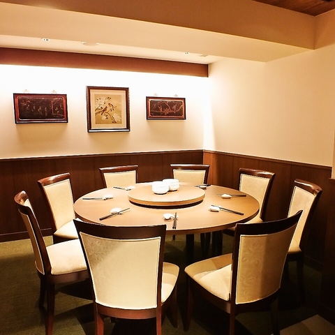 写真は8名様の円卓個室です。その他、ゆったりしたテーブル個室や、円卓個室など様々な個室をご用意しております♪ラグジュアリーな店内は接待や各種宴会、特別な日にも最適です!ご予約承っておりますので、お気軽にお問い合わせください♪