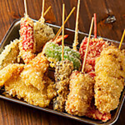 カジュアルに楽しめる当店は、居酒屋ならではの一品も充実♪自慢の串カツは、肉、魚、野菜といった多彩なネタをご用意。また、ご飯類も揃っているのでしっかりとした食事も可能です。注文が入ってから炊く「鯛釜めし」や海鮮丼はおすすめ!定番「だし巻き玉子」や「特製チキン南蛮」、お酒のアテに珍味も取り揃えています。