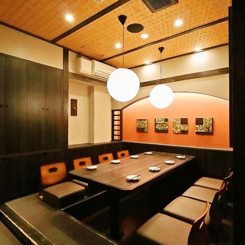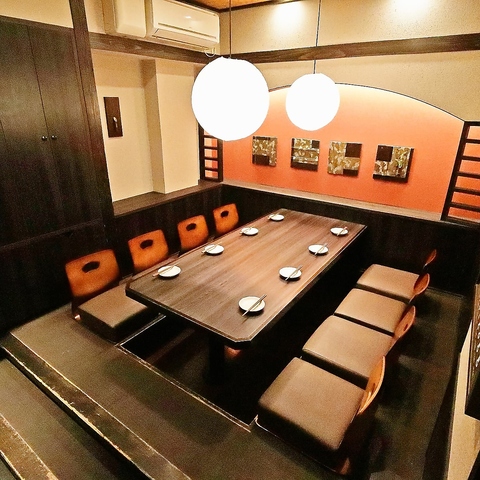 掘りごたつの個室をご用意!お仕事帰りでも、足の疲れを気にせずお食事をお楽しみいただけます♪人数等、お気軽にご相談ください。各種ご予約をお待ちしております!