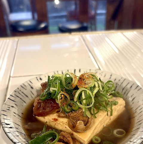 甘辛出汁で炊き上げた「木綿豆腐」に、トロトロ「牛すじ」をたっぷりとのせた、たまらない1品です!