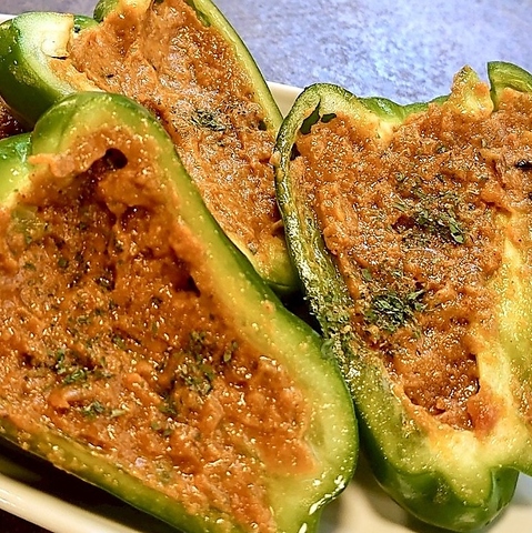 パリパリ食感の冷やしピーマンに、スパイスカレーを詰め込みました。 ピーマンのスパイスカレー詰め! ピーマン嫌いでもいけちゃう?