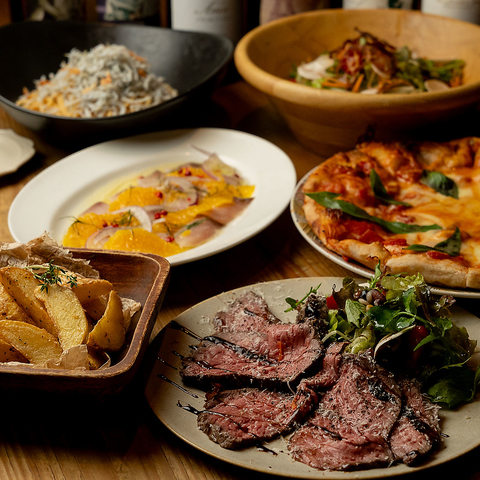 前菜~お食事メニューまで1品料理も各種取り揃えております!お肉料理・アヒージョ・パスタなど☆オススメなどお気軽にお尋ねください♪単品飲み放題もございますので、アラカルトとご一緒にお気軽にご利用ください!