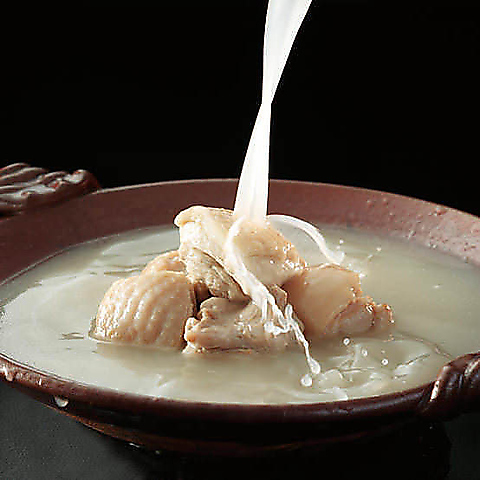 [ぶつ切り・ミンチ・切り身・肝・野菜] 美食同源 体の中から美しく『コラーゲンたっぷりスープ』 こだわりの鶏、スープ、ぽん酢。 最高級の味覚をごゆっくりとご堪能下さいませ。 コラーゲンをたっぷり含んだスープは、 健康と美容づくりに抜群です。 2人前よりご注文承ります。