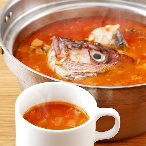 本日の鮮魚のアラをベースにトマトソースで仕上げたブイヤベースです。乾杯や〆にどうぞ!
