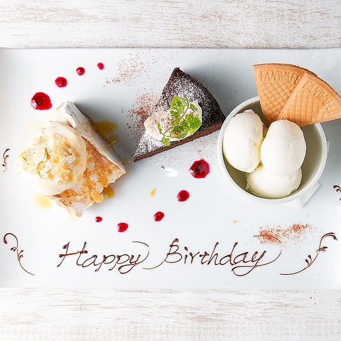 彩り華やか◎記念日や誕生日といったスペシャルな日をより華やかに!目にも鮮やかな華麗なアラカルト料理をご用意しております。特別な方へのサプライズなども承っておりますのでお気軽に店舗までお問いあわせ下さい。