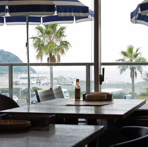 光りが溢れる開放的な店内。ランチからディナーまでオーシャンビューの気持ち良い空間で乾杯!