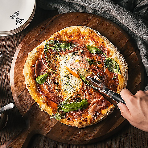 生ハムの塩気とマイルドな玉子の組み合わせがやみつきのピザ