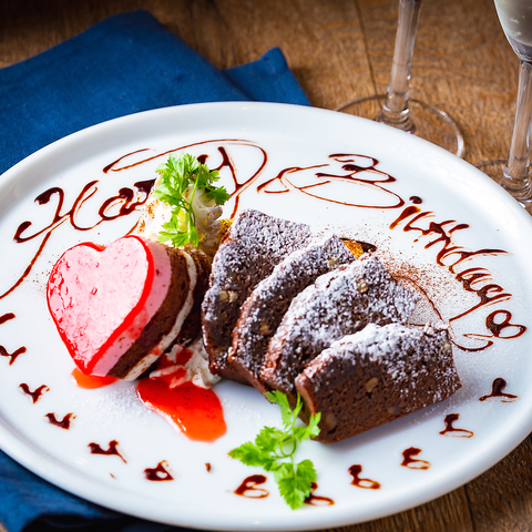 大切な方の誕生日、記念日のお祝いを、サプライズ好きなスタッフが全力でサポートします♪お好みのBGM、演出等ございましたらお気軽にお伝えください♪バースデープレートは1100円(税込)~ご承ります★※要予約となっておりますので、お気軽にお問合せ、ご予約ください。