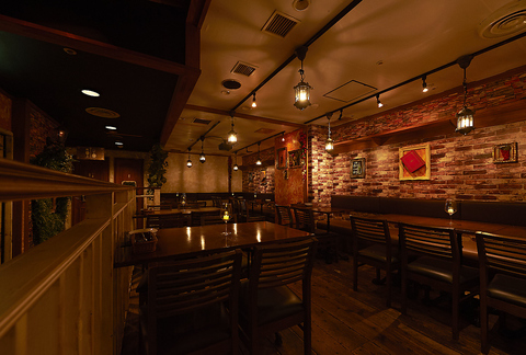 吉祥寺駅徒歩1分。木の温もりと照明が心地よい隠れ家空間。ワインビュッフェが楽しめる席や、貸切対応のソファー席も完備。最大40名様まで貸切可能で、結婚式二次会や宴会にもおすすめ。