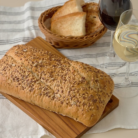 グレインブレッドとフォカッチャの2種類でご用意!バケットに合う料理も沢山あります♪