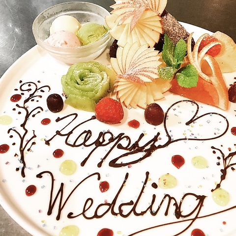 豪華!メッセージ付きデザートプレートは1500円(税込)★記念日デートや女子会、誕生日会などにおすすめです!スタッフが心をこめてお祝いさせていただきます◎※要予約