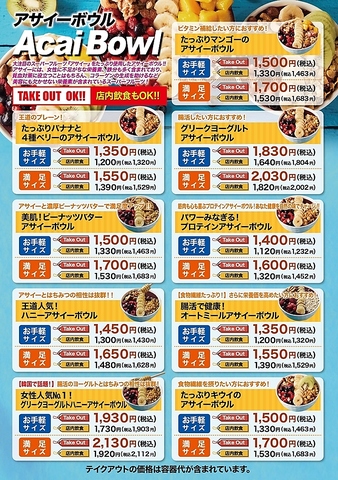 今流行のアサイーボウルを豊富にご用意♪テイクアウトも◎
