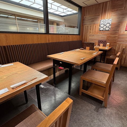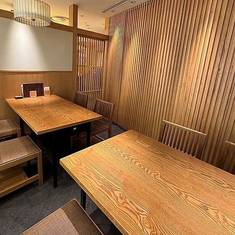 阪急うめだ本店の12階、和の清々しさに溢れるゆったりとしたお席が魅力。ボックス席やテーブル席、カウンター等など、少人数から大人数でのお集まりまで対応可能。