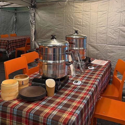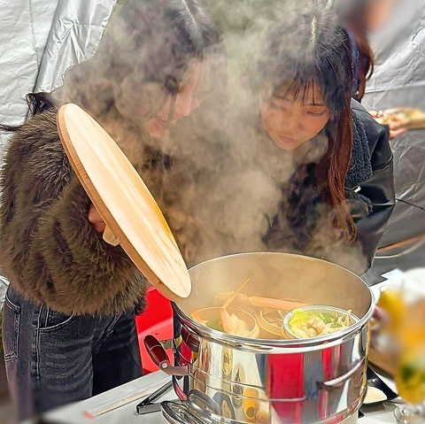 あったかテントで冬でも快適。湯気と香りをゆっくり堪能。