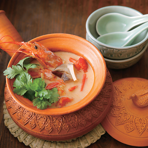 当店のトムヤムクンはエビを丸々使用。パクチーとレモングラスの味がアクセントになっています♪