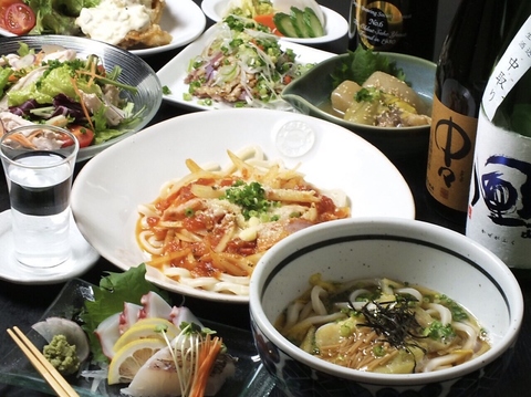 当店自慢の創作うどんとお酒を一緒にお楽しみください。相性は抜群です。