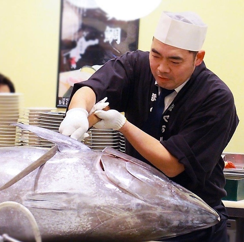 目の前で大きな本まぐろを捌く様子は迫力満点!新鮮な生本まぐろを楽しめる"エンタメ"感が満載のお店です。