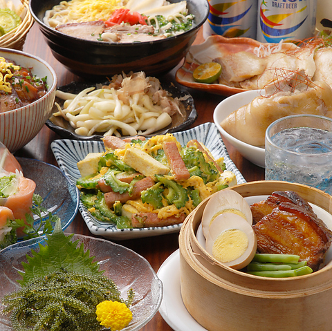 2.5H飲み放題付き☆コースは前菜から〆まで大満足の全8品!!このボリュームでこのコスパ☆自慢の沖縄料理の数々を是非♪