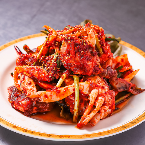 国産のカニをまるごと一匹使用しております◎新鮮な国産カニに、自家製タレをたっぷりと絡めた味付けケジャンは、カニ好きにはたまらない逸品です!濃厚なカニの甘みと旨味が口いっぱいに広がり、タレの深い味わいがマッチ♪2人以上でのシェアがおススメです!