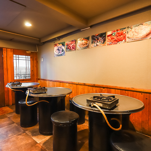丸テーブルと丸椅子が並ぶ、カジュアルで活気ある賑やかな雰囲気♪仲間内での食事や、各種ご宴会などの飲み会にぴったりです◎大人数~中規模宴会、女子会やカジュアルなデートまで、様々なシーンにご利用いただけます!店内の椅子は全て荷物が入れられるので、上着を入れておけばにおいがつくのを防げます◎
