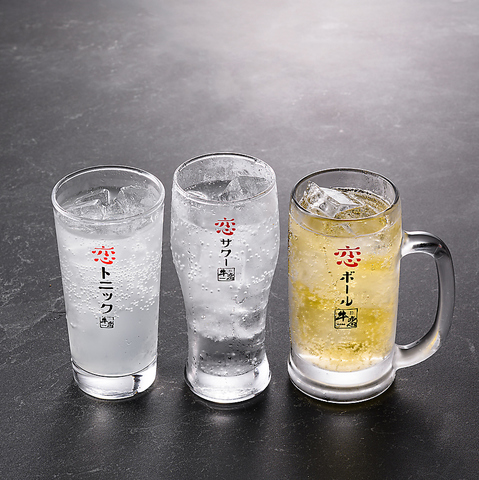 | サワー | レモンサワー/ゆず/グレープフルーツ/すだち/リアルゴールド/カルピス/プレーン |