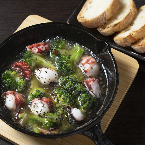 ブロッコリーとタコのアヒージョ(バケット付き)