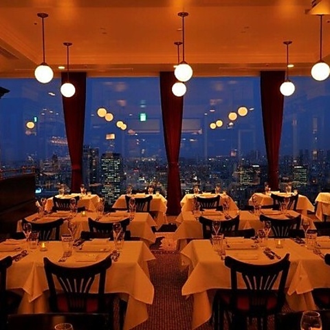 窓際に配置されたお席からは、地上150メートルから見下ろす都心のパノラマ夜景を独占できます。刻一刻と表情を変える夕景から煌めく夜景へと移ろう景色は、まさに圧巻の一言。デートやプロポーズ、お誕生日のお祝いなど、ドラマチックな演出を求めるシーンにふさわしい特別な特等席となっております。