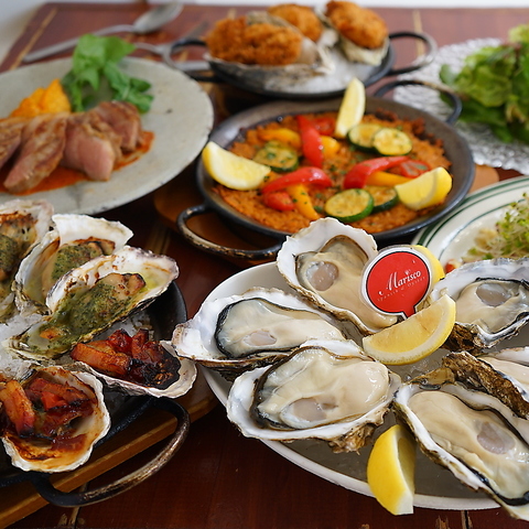 生牡蠣2種食べ比べ付き♪季節毎の旬な食材を使用した贅沢コースです。前菜~デザートまで『Marisco』を味わい尽くせます!※牡蠣が苦手な方のためにお料理内容の変更も致しますので、お気軽にお問合せくださいませ。