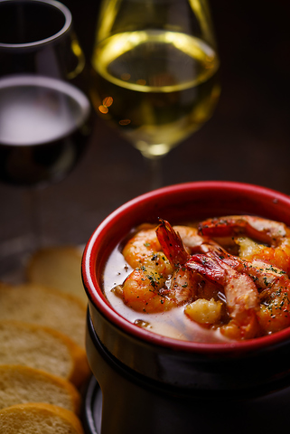 オリーブオイルがグツグツと煮立った熱々の状態でサーブ。炎のゆらめきとガーリックの香りをお楽しみください。上記メニューを中心に、日替わりで10種類ほどをご提供しています。