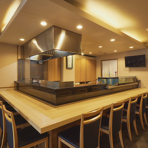 【カウンター席】落ち着いた雰囲気がどの世代の方にも人気のカウンター席が11席ご用意ございます。鹿児島中央駅から徒歩5分でアクセス抜群。清潔感溢れる店内で、ここでしか味わえない特別な時間をお楽しみください。会社帰りや気の合うご友人とのお食事、お一人様でも大歓迎です。