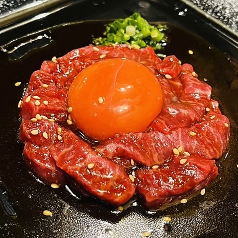 <黒毛和牛ユッケ風>肉の旨みと卵黄のまろやかさが織りなす至福の味わい!