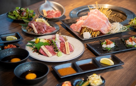 牛タンやハラミ、当店一押し「“A5等級”和牛サーロイン焼きすき」、「厳選オリーブ牛三種盛合せ」など、最高等級A5ランクのお肉が愉しめるコースです。