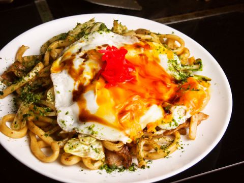 お好みで、醤油味・ソース味が選べる。お好焼に押されつつもサイドを固める名わき役!