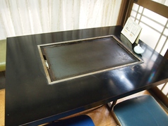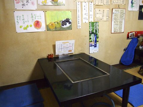 ゆったり寛げるお座敷はテーブルが2つで、家族連れやグループに人気だ。アツアツをみんなで。