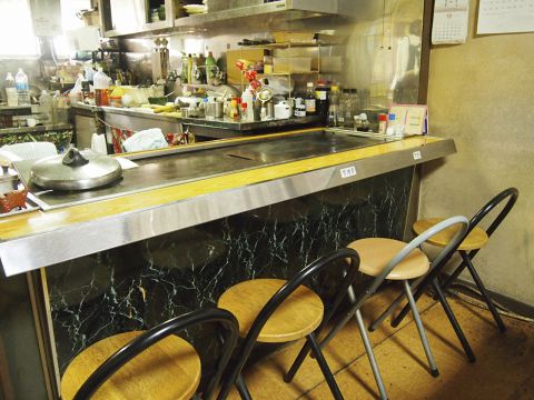 カウンターでは、目の前で焼かれるお好焼の香ばしい香りが五感を直撃!臨場感あふれるカウンターは禁煙。