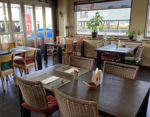昼間は明るい光が差し込み、開放感たっぷりで心地よく過ごせます。ゆったりとした店内でおいしいお料理をゆっくりとお楽しみください。