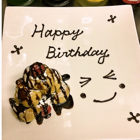 記念日や送別会にピッタリなメッセージプレートをお届けします♪(ご予約の際、メッセージ内容お伝えください)食後であればデザートプレートに変更もOK!