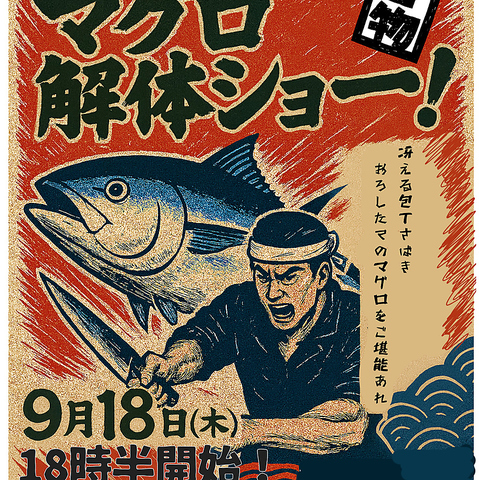 大漁旗のもとで頂く自慢の鮮魚料理は、更に美味しく召し上がれる事間違いなし!?
