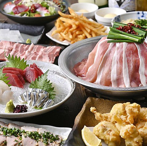 じげもんとん自慢の長崎芳寿豚や季節の海鮮、絶品鍋などが味わえる2時間飲み放題付きコースは4,480円~!