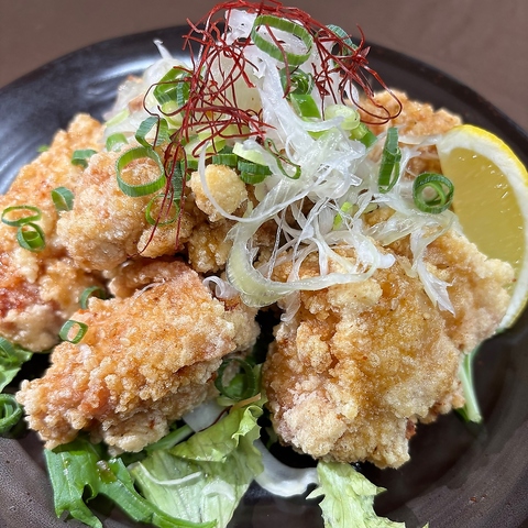 ゴロッとジューシーな鶏肉にカラッと揚げた衣!えんじょい特製甘辛なタレがジュワっと食欲をそそります!6個で880円!1個が大きくボリューム満点なので、満足度も高い!えんじょいに来たらまずコレ♪