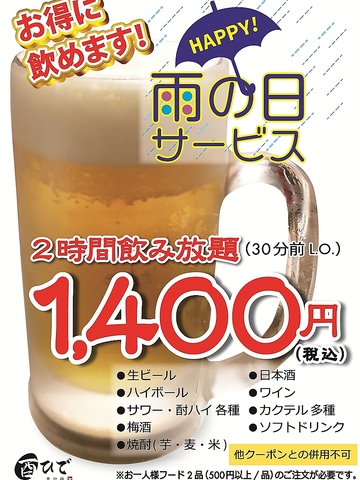 【雨の日サービス】雨の日はお得にお安く飲み放題がご利用できます!