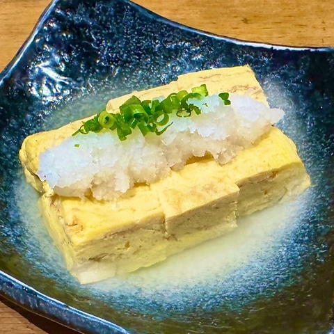 定番の出汁巻き卵をさらに出汁に浸し、旨味を倍増させました。