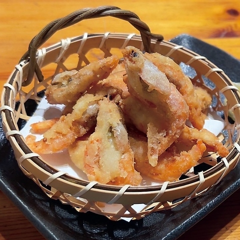 サクサクの甘エビの唐揚げ。甘エビの香ばしい味がサクッと美味しい唐揚げです。