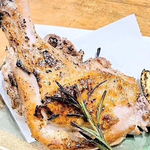 『まずはこの一本!』当店名物骨付きもも。骨まわりの肉はジューシーで旨味がぎゅっと詰まったまさに旨味の宝庫。是非、アツアツの一本焼きをお召し上がりください。