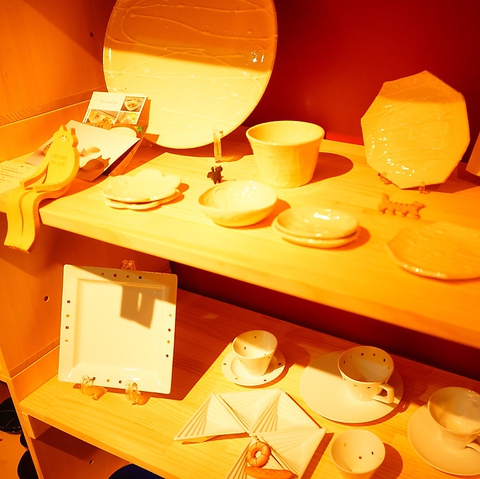 | テーブル | 4名様×5 | 店内奥の一角では種類豊富な器を展示。販売も行っていますので、ぜひご覧くださいませ。 |