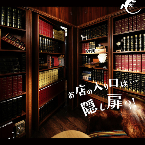 まずは入り口で驚くこと間違いなし!本棚?お店に入るのにもちょっとした仕掛けがあって、入店からテンション上がります★大人がワクワクできるとっておきの遊び場へようこそ♪